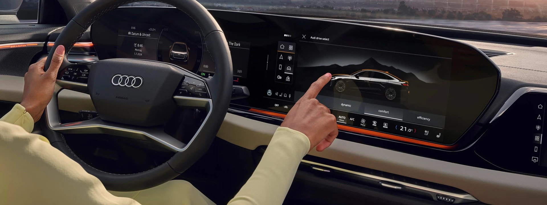 O Audi Virtual Cockpit Plus exibe as informações de condução mais importantes em uma das três variantes de layout, com operação personalizável, navegação de menu intuitiva e display orientado à direção.