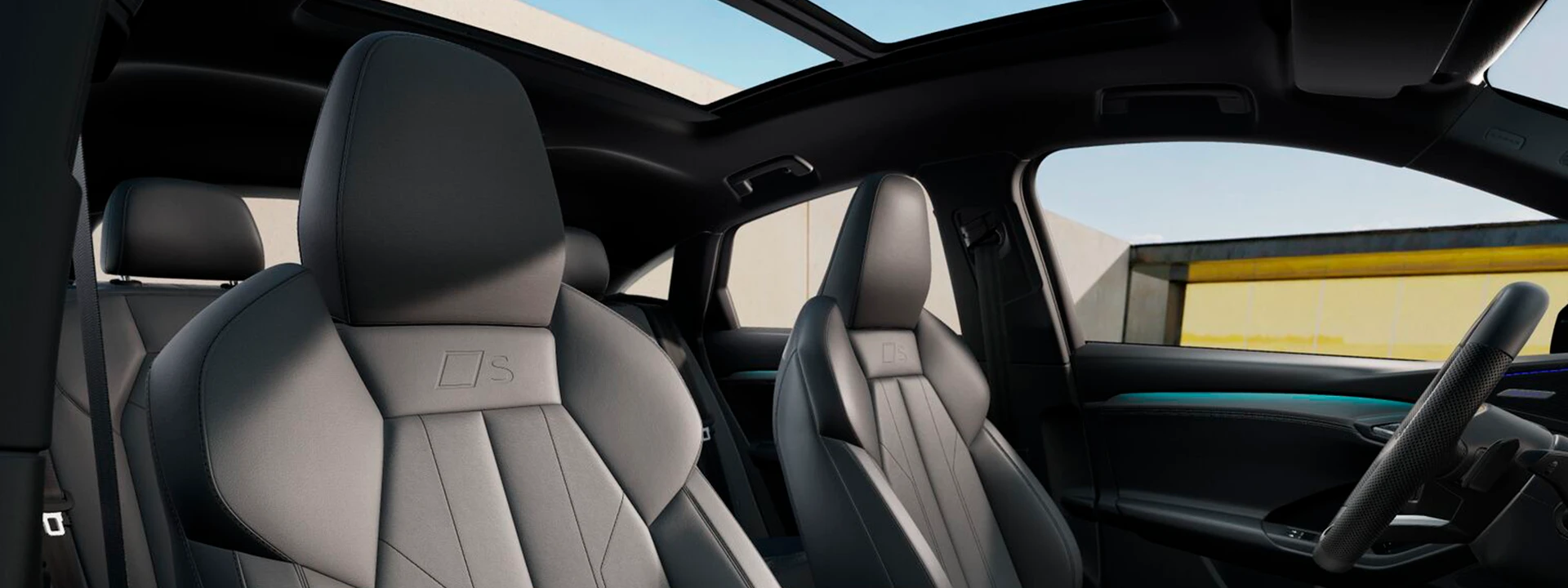 O formato aerodinâmico do Audi Q6 Sportback e-tron quattro contribui para sua eficiência especial e longo alcance. Em seu coração está a bateria de íons de lítio de 800 volts integrada na parte inferior da carroceria, com desempenho impressionante – tanto em termos de carga quanto de propulsão.