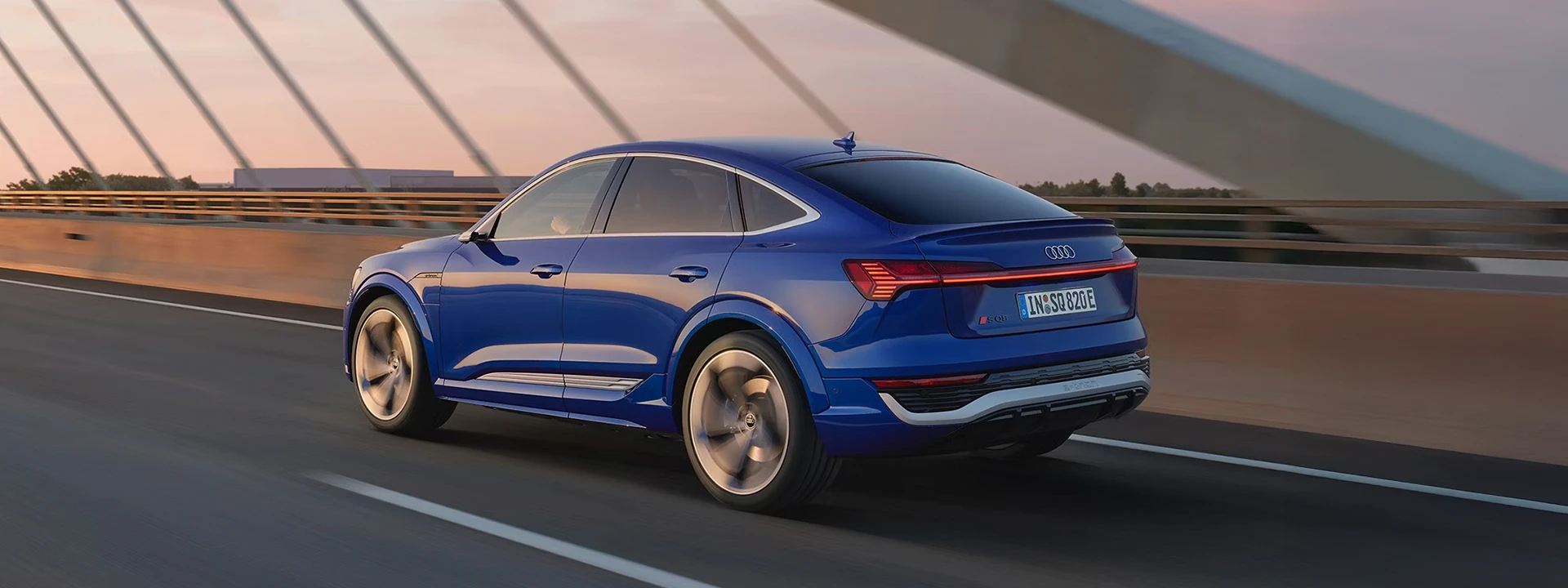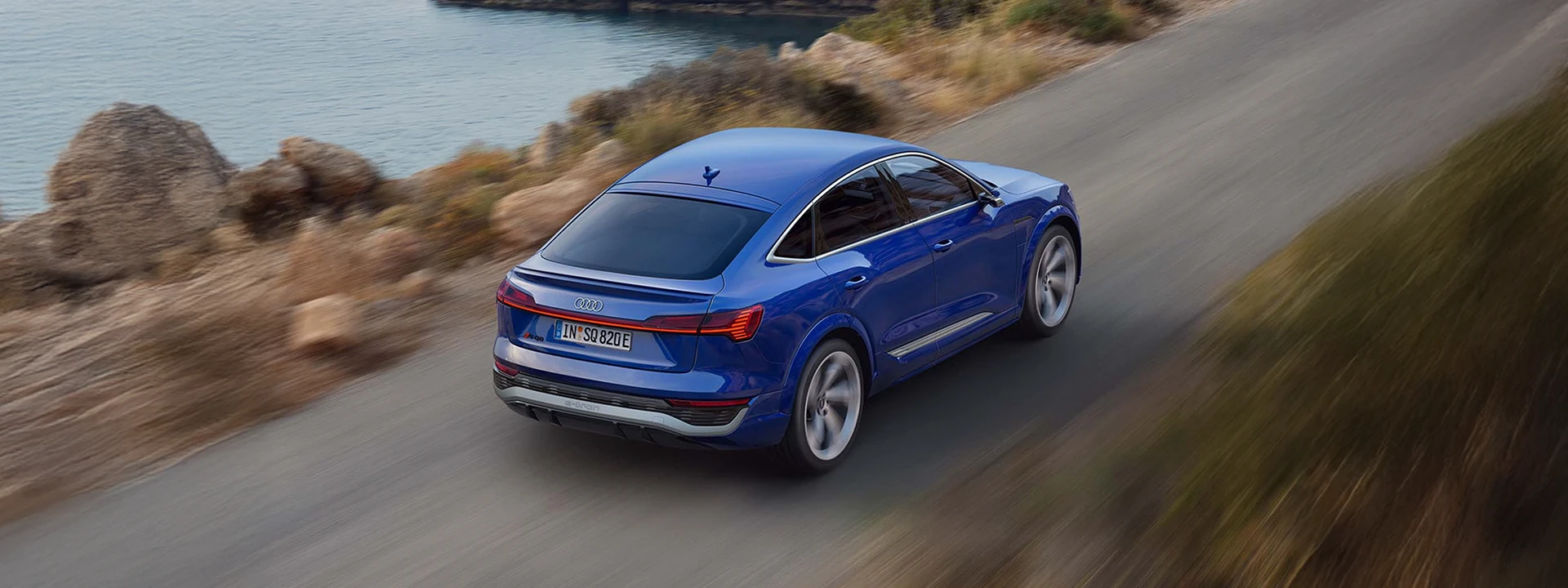 A linha do teto levemente inclinada confere ao modelo uma aparência de coupé e reflete o dinamismo progressivo do veículo no exterior. Os anéis Audi com novo design e outros detalhes elegantes são acentuados em particular pela pintura metálica Azul Ultra.
